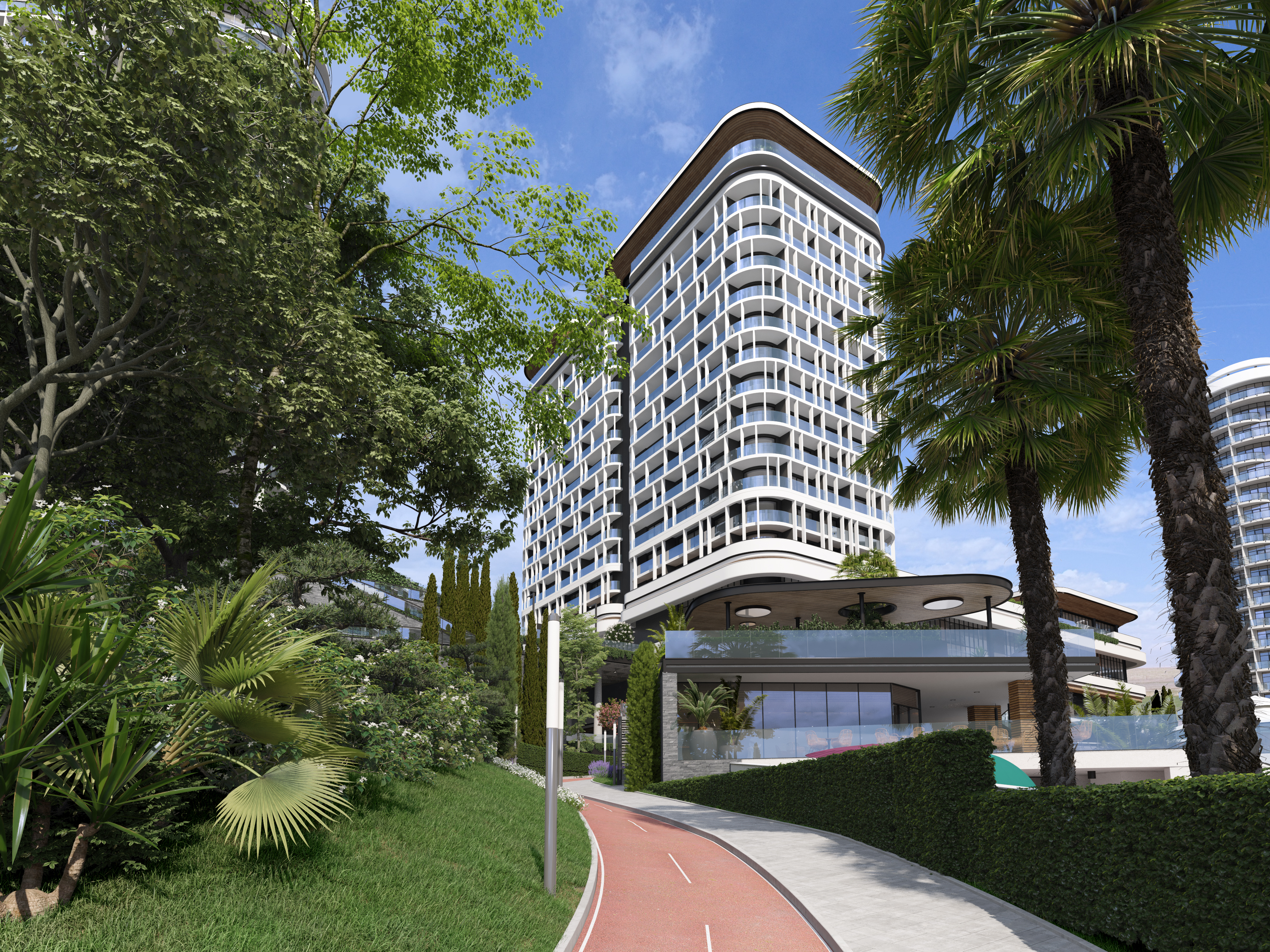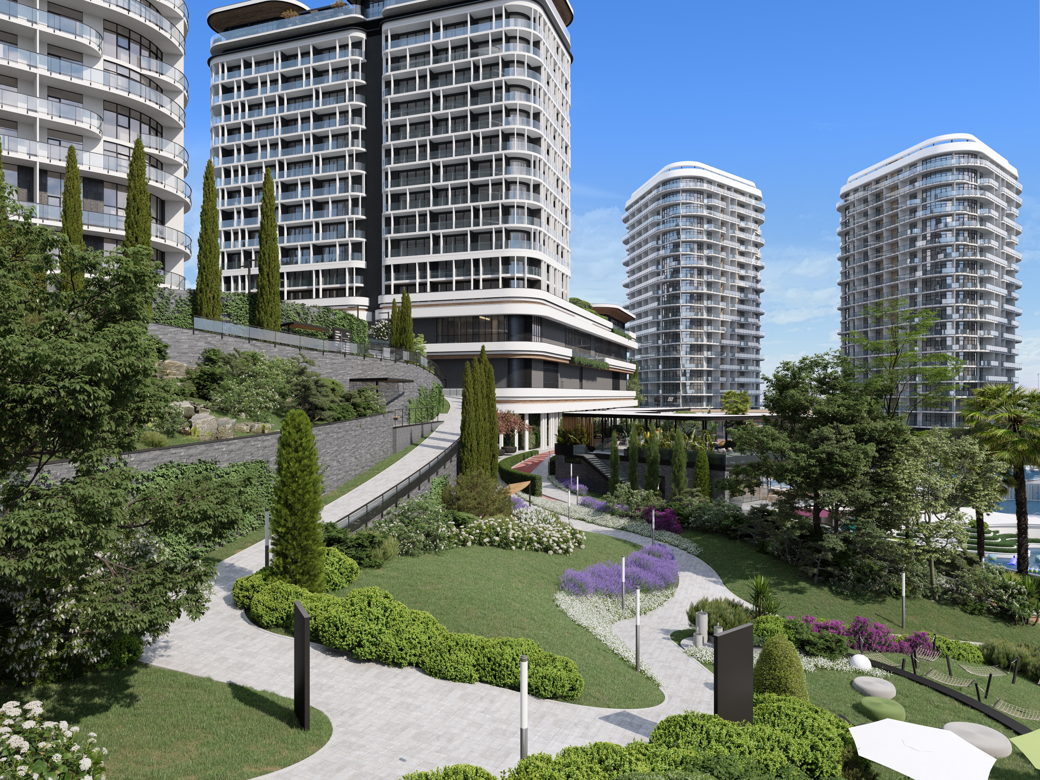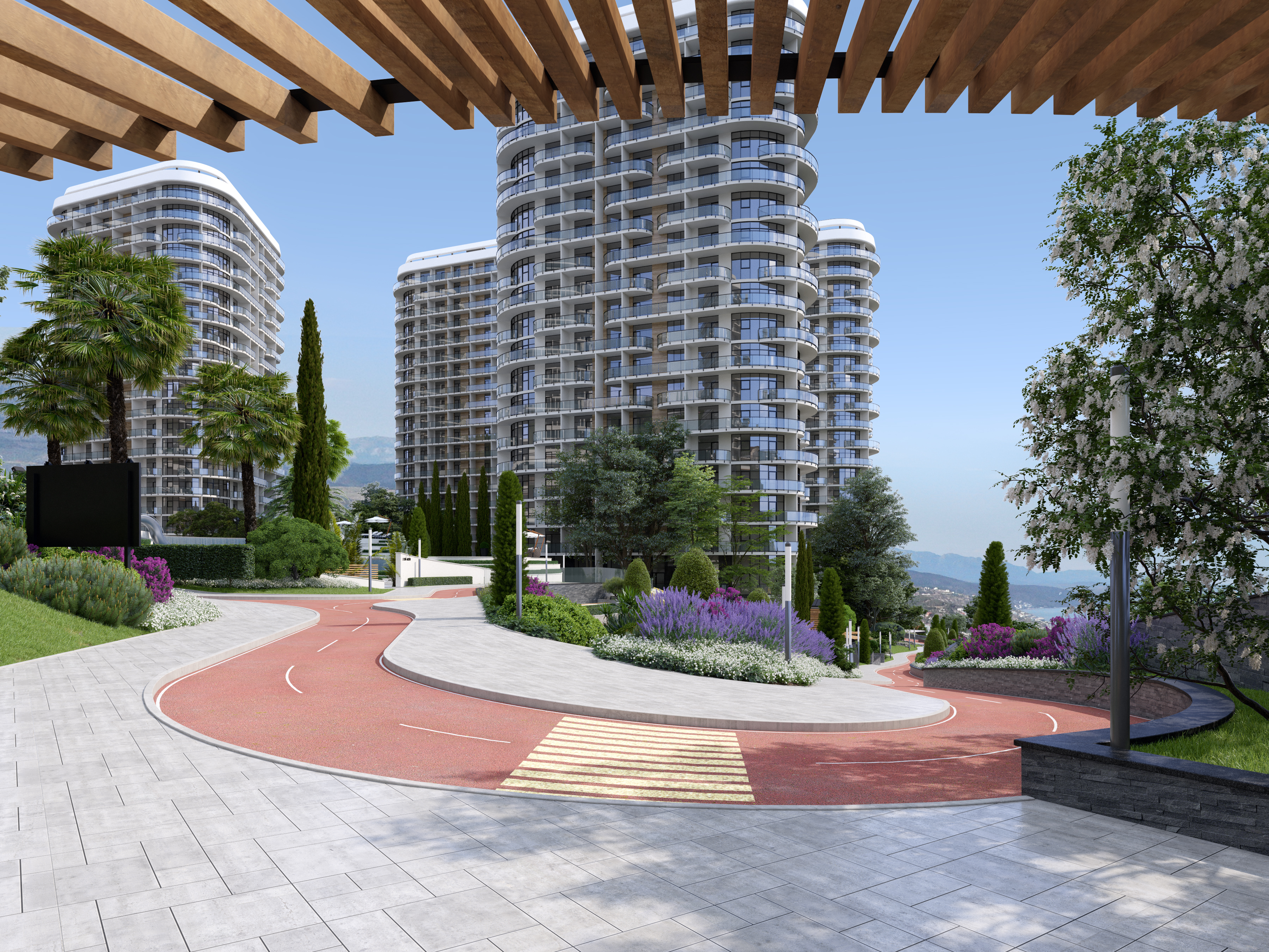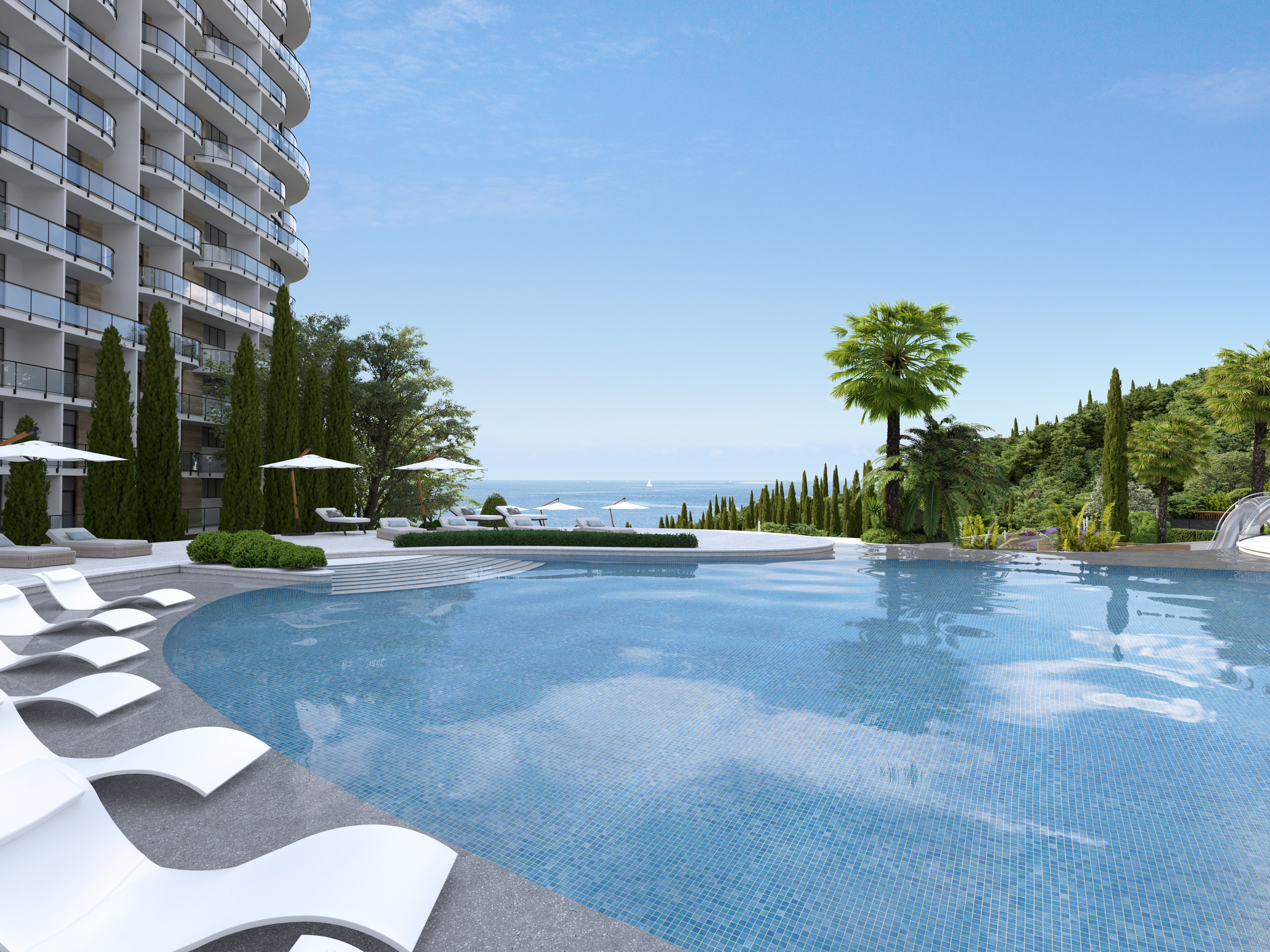 [vc_row][vc_column][vc_column_text]Current project was implemented by Zelyoni studio, as a second phase of construction of the Apart-Complex on the Black Sea Riviera. This was the second time that our Studio was involved in the construction works of the Complex. We were introduced to the project when it was already under construction and needed some adjustments and revisions of the originally existing design. Having successfully achieved many goals, we were invited by the client to take part in the next stage for improvement of the territory and creation of common areas for its residents.