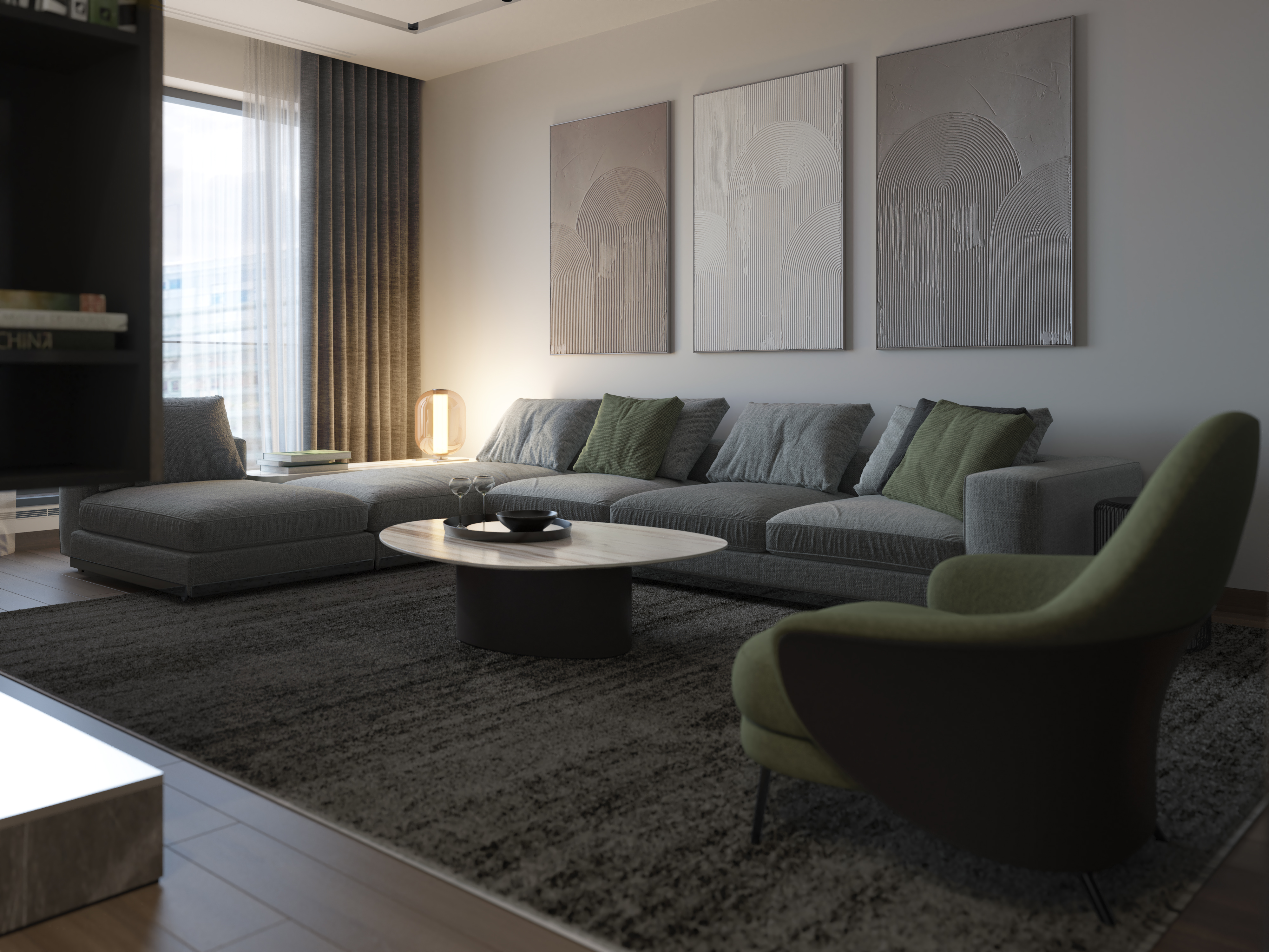 As part of the project, we have also selected wall paintings and decor elements that organically complemented the interior of the apartment. As a result, our client received a stylish and functional family space, that has everything required for a truly comfortable life.