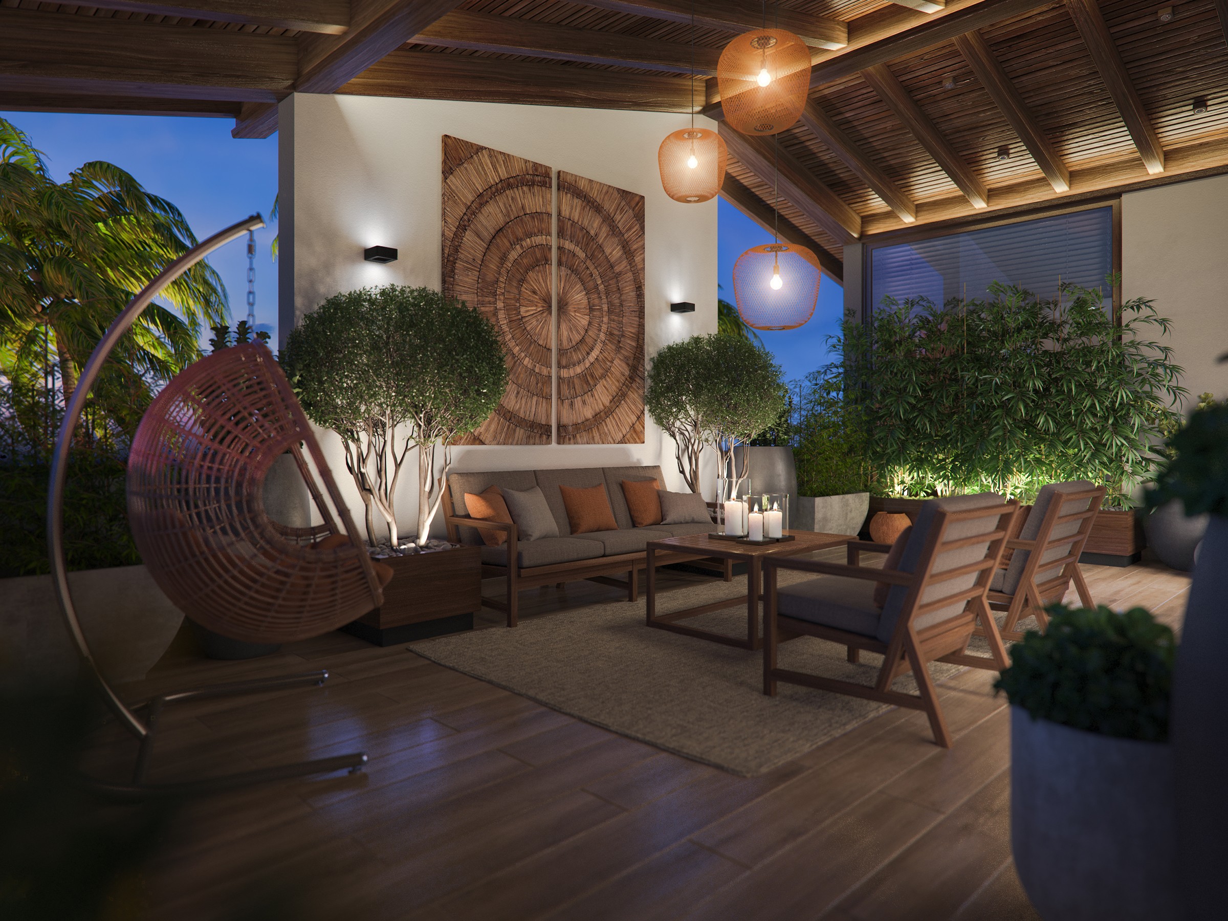 The design solution provided all six rooms with terraced balconies with beautiful views, complemented by ample greenery – creating the feeling of being in your own garden!